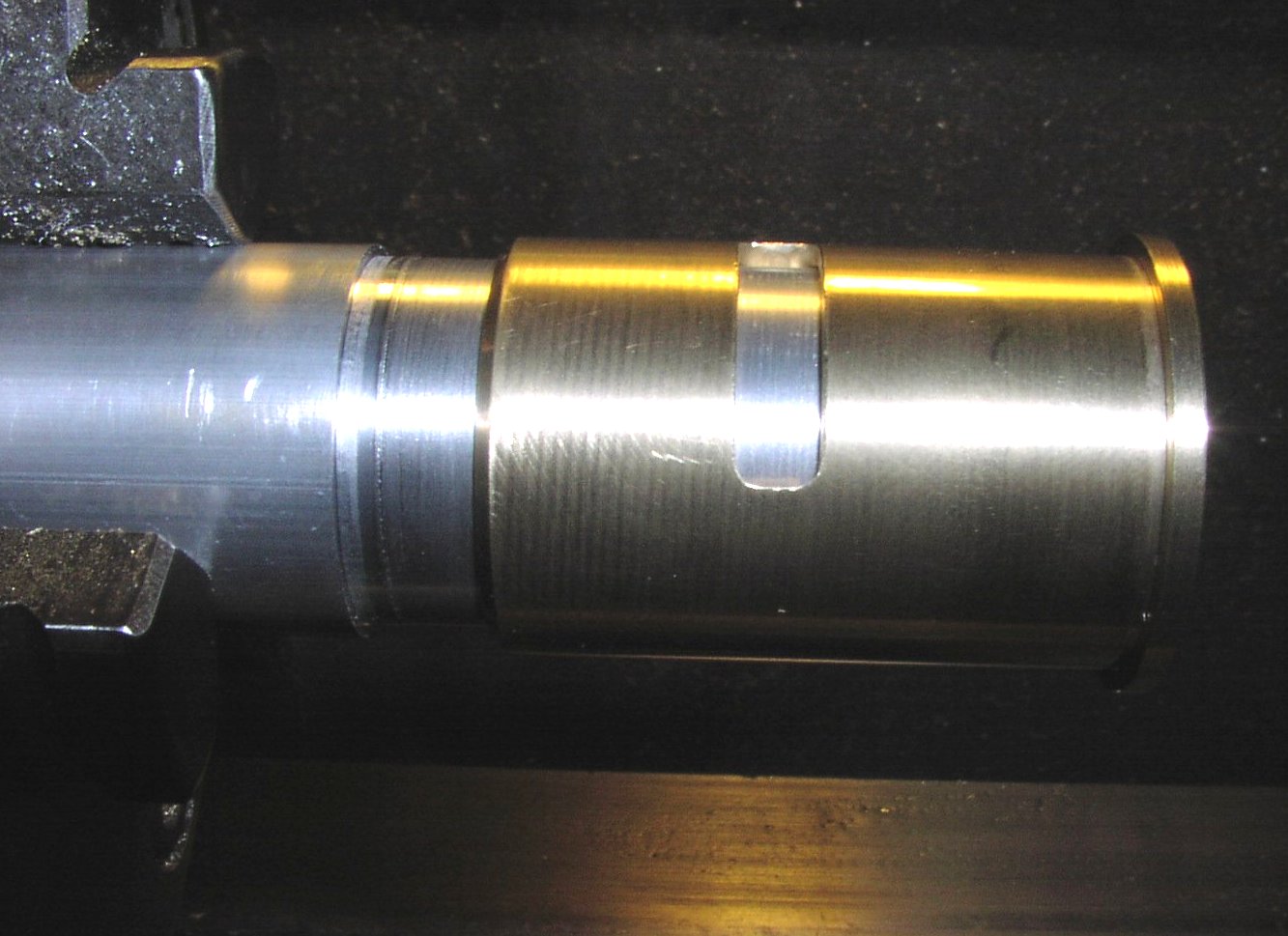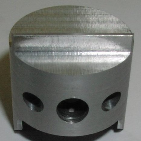 The piston is manufactured from 20% silicon powder metal See page 8 for source. This material is best machined with a tungston carbide turning tool resharpened to give a 10° toprake and a very sharp cutting edge This is very important as the silicone in the piston will wear the tool very quickly and a new "as purchased" turning tip will not give the required finish. A serious manufacturer would use a diamond turning tool. Machine the inside diameters to final size and machine the outside diameter to 0.2mm (0.008") above nominal dimension. |