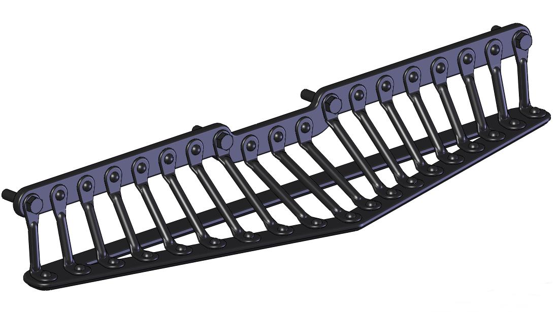 The cowcatcher model shown below doesn't try to replicate the actual shapes of the forged ends as they will depend on the actual forging process and can't be modelled precisely. The drawings show only the important dimensions.