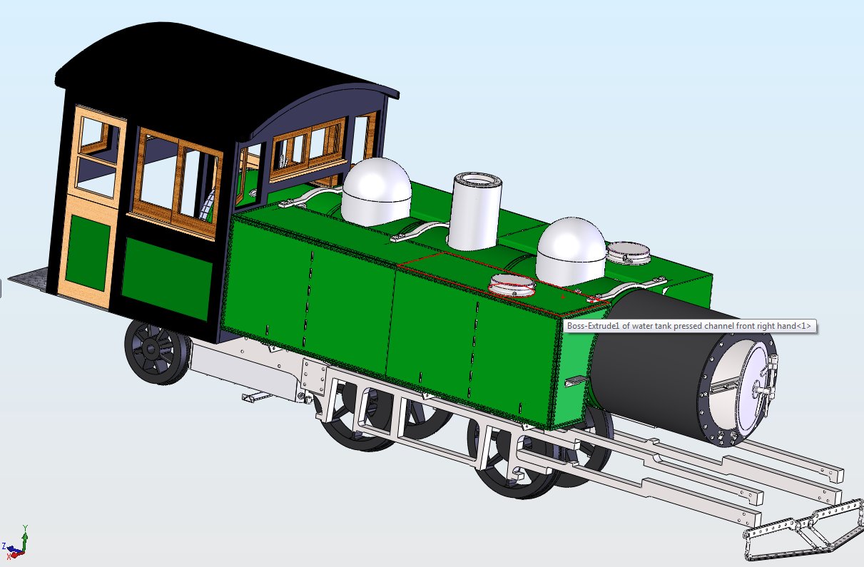 Well, I have been working on the boiler cladding and I guess that I am half way through the modelling. The Firebox backhead cladding was a real challange and the model is still reporting a problem(et) but I know what the problem is and I think that I may be able to force the program to model it correctly with a bit of cunning!