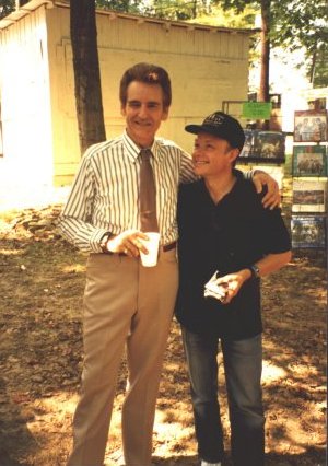 Kenny plays the 5 string banjo and provides the high tenor vocals. Kenny is shown here with Del McCoury at BeanBlossom. Kennys banjo is a Gibson copy specialy built for him by Bill Sullivan of First Quality Music. Email Kenny at kennybaker@thembakers.demon.co.uk |