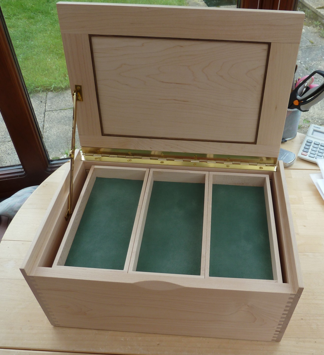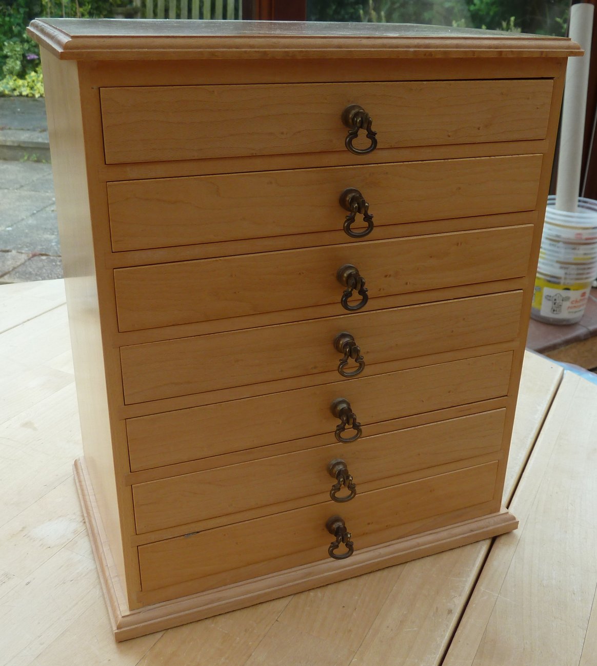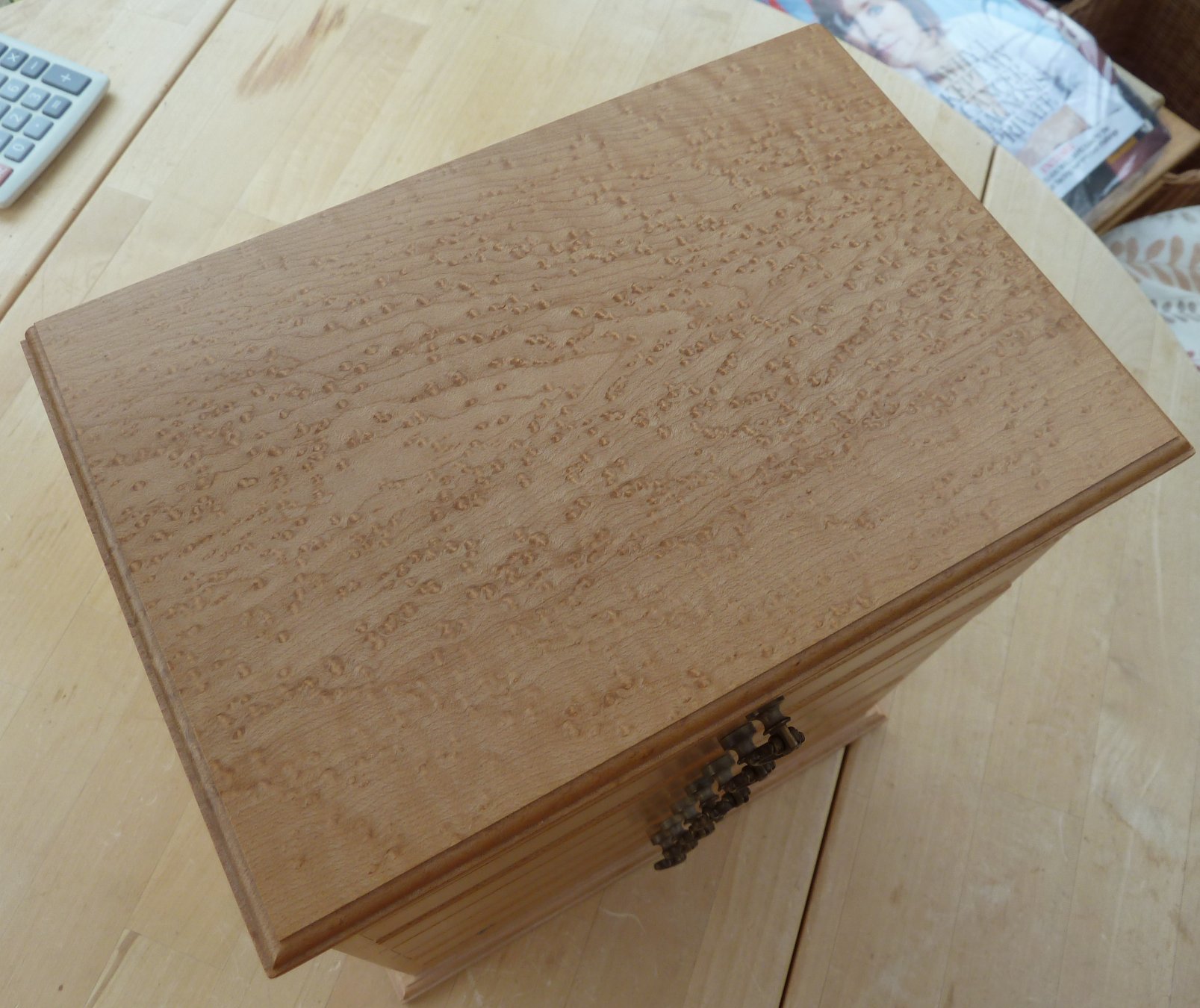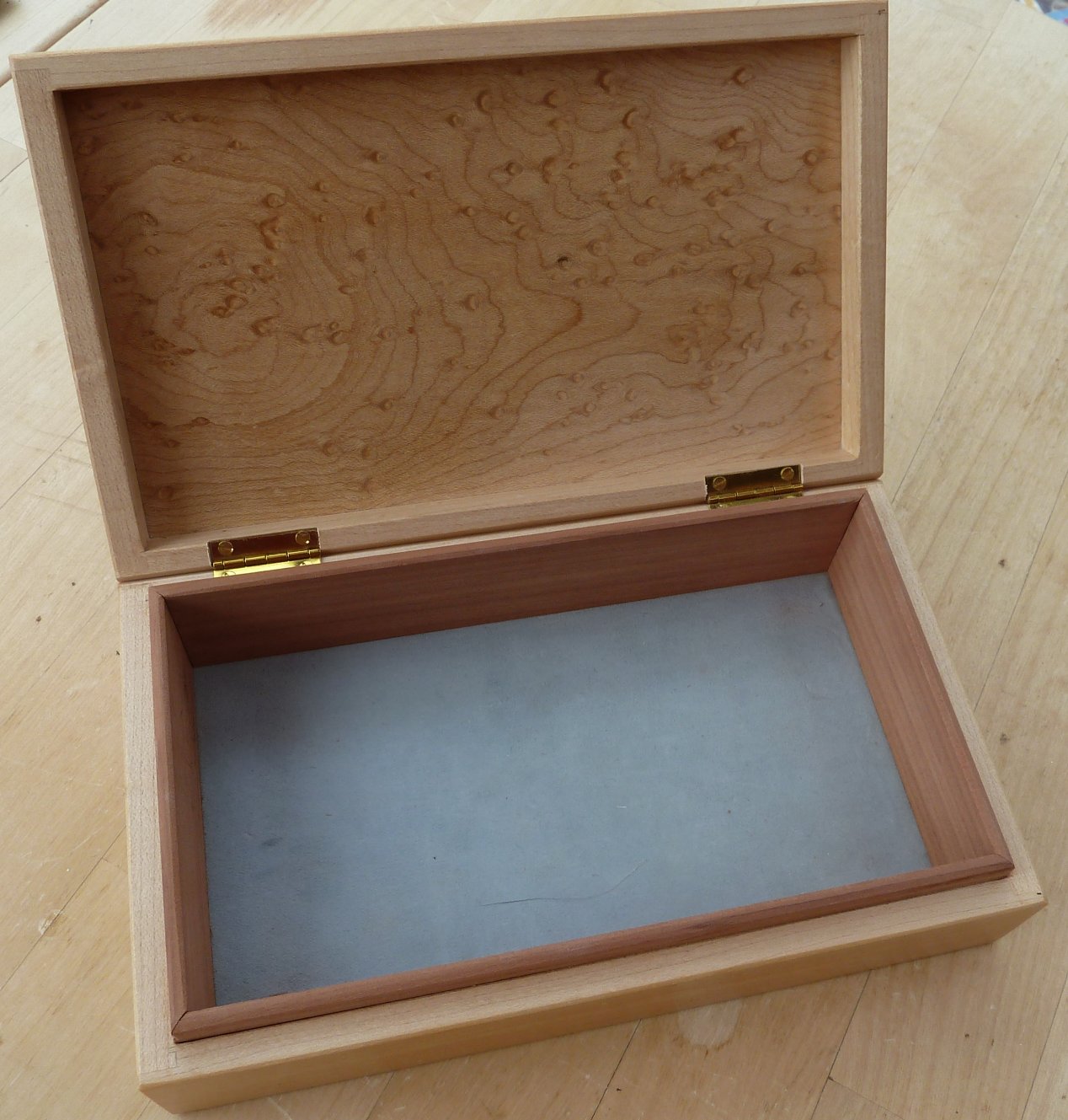 This is a single layer box in birdseye maple with a hinged lid. The condition is as new and doesn't appear to have been used. Overall size is 192mm x 115mm x48mm Offers in the region of £60 |