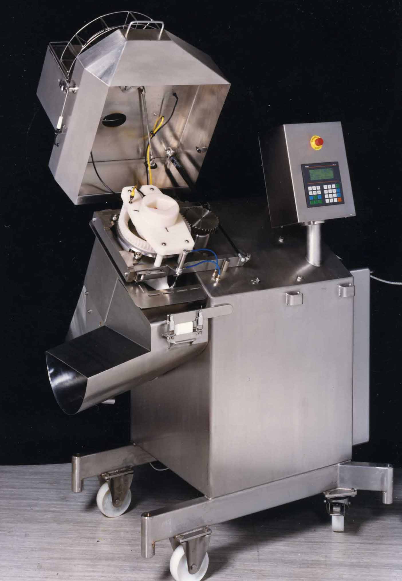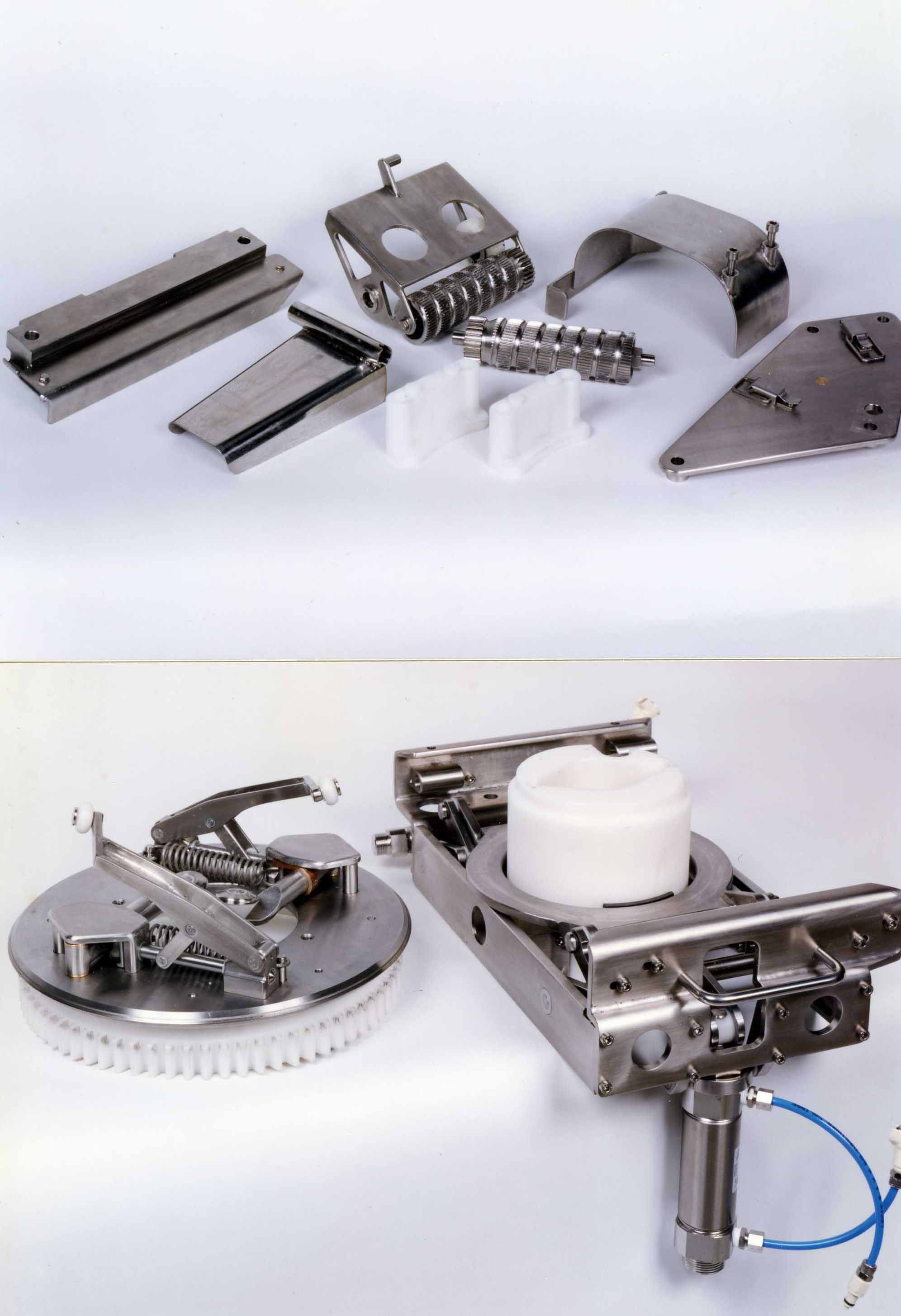 Human blood plasma is collected by centrifuging to remove just the plasma and returning the rest of the blood to the donor. This plasma is stored at -40°C and is processed in large quantities to extract the various factors, albumin etc. The requirements were to develop a machine to strip the frozen blocks out of the plastic bags they are stored in. This is very demanding as the frozen plasma bonds very strongly to the plastic. The machine shown here was designed and detailed by me using a 2D CAD package called Medusa. I also organised the manufacture, assembled the machine, wrote the PLC Program, developed the process and installed the machine in the processing laboratory.