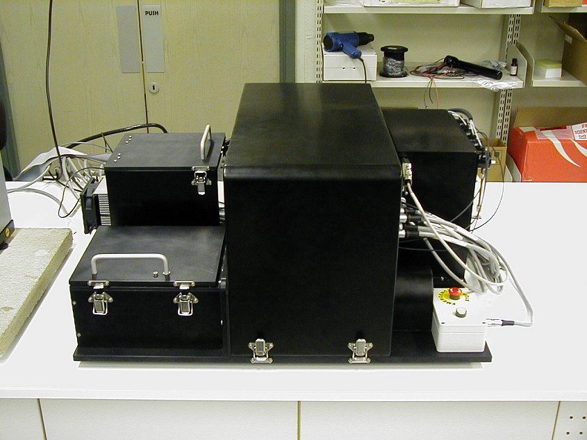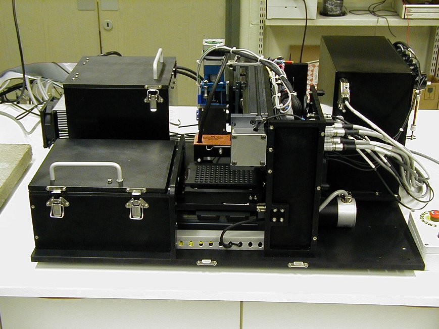 This proof of principal unit tested prepared samples of fluids taken from a patient and looks for tiny emissions of light and from that identified the type of bacteria, the type of antibiotic that would kill it and in what strength it should be administered. The challenge was to contain the mechanism in an enclosure that would exclude light down to just a few photons - a real challenge. The unit was a success but I don't know if it was taken any further. Click the picture for a larger version |