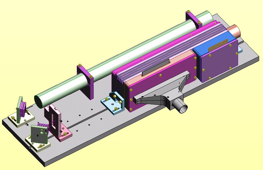 A lot of the projects I have been involved in are confidential and some the ones below have been censured to maintain that confidentiality. With this small sample I have tried to indicate the breadth of my experience which covers an unusually wide spectrum from large machine production lines to tiny moulded products. I have designed the mechanics for 13 interferometers so far, a couple of which are shown here. I have a lot of experience of design for medical equipment, high accuracy optics, test rigs, plastic moulding, and special purpose machines. I am also a qualified Scientific Instrument maker with my own workshop and nearly 30 years experience of using and managing CAD.