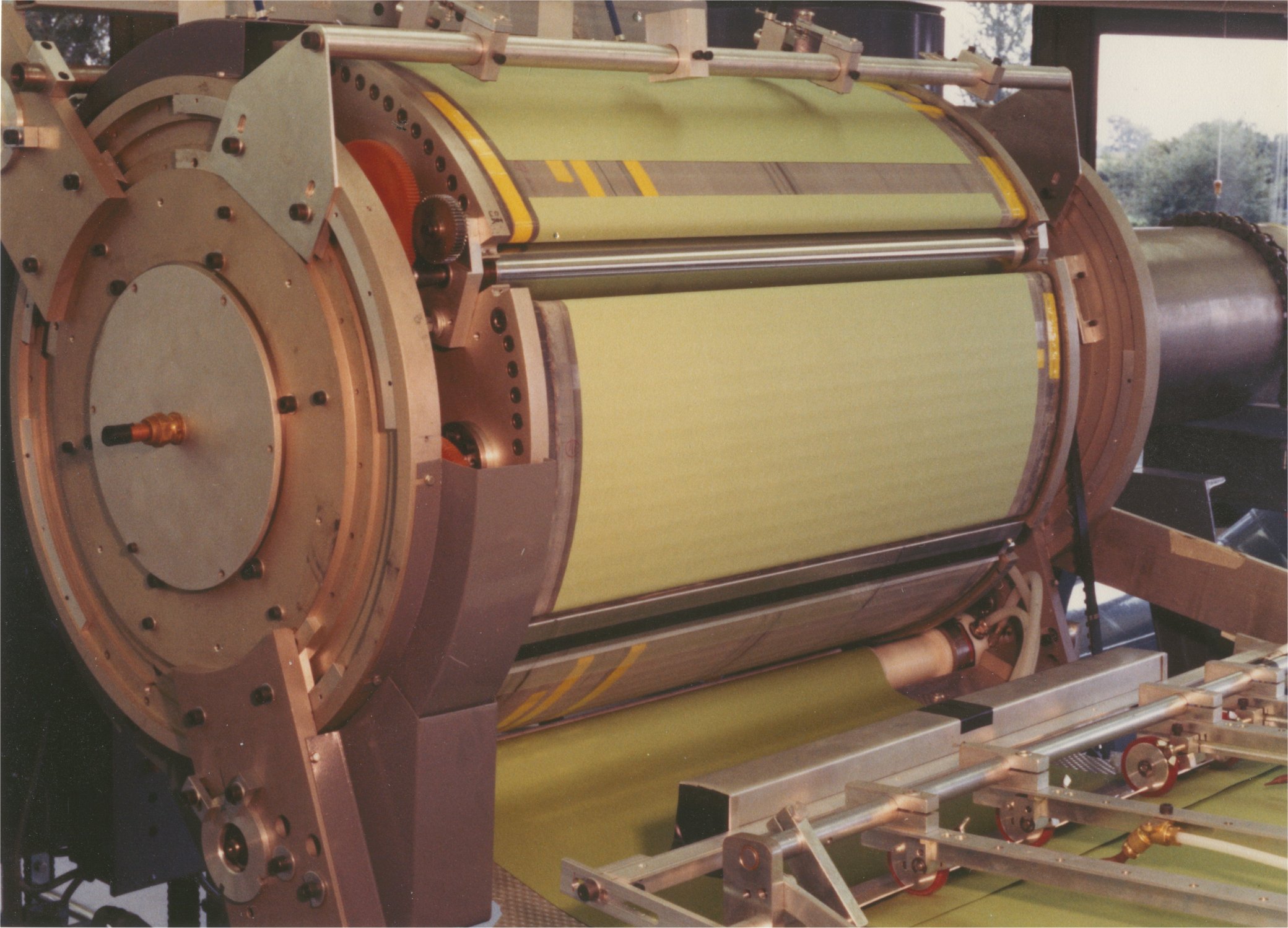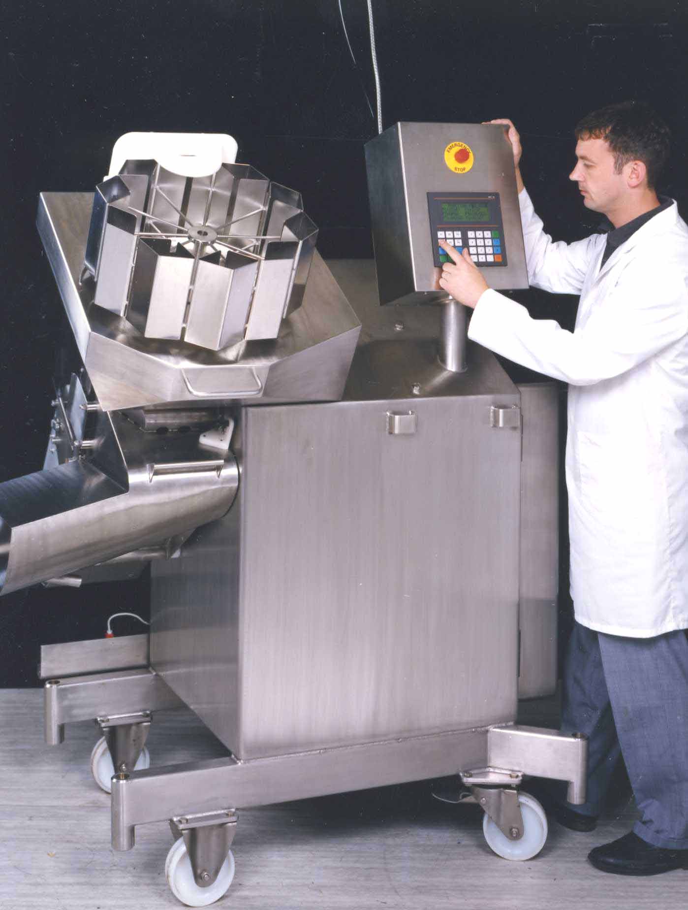 The original machine for the manufacture of round teabags was developed at CCL. I was responsible for the design of the centre portion of the mechanism that cut the round bag from the web. Click the picture for a larger version |