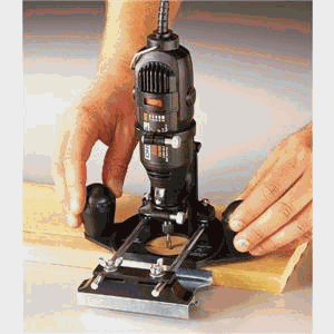 The groove for the stitching around the outside can be cut by hand but a much better job will be achieved if a router is used. I use a Dremel router for this type of work. I use the Ø3mm router cutter available from Dremel. These used to be hard to find but I have found that they are now easily obtained via the web. I also use the vee router cutter to cut a "vee" groove on the back of the plate with the router using the same setting as the stitching groove. This serves a double function. First it marks the centre for drilling the stitching holes and second it gives the leather something to pull down into, I'm not sure whether it helps the sealing because I've never done a set without it, but I've never had a leak in the stitching!.