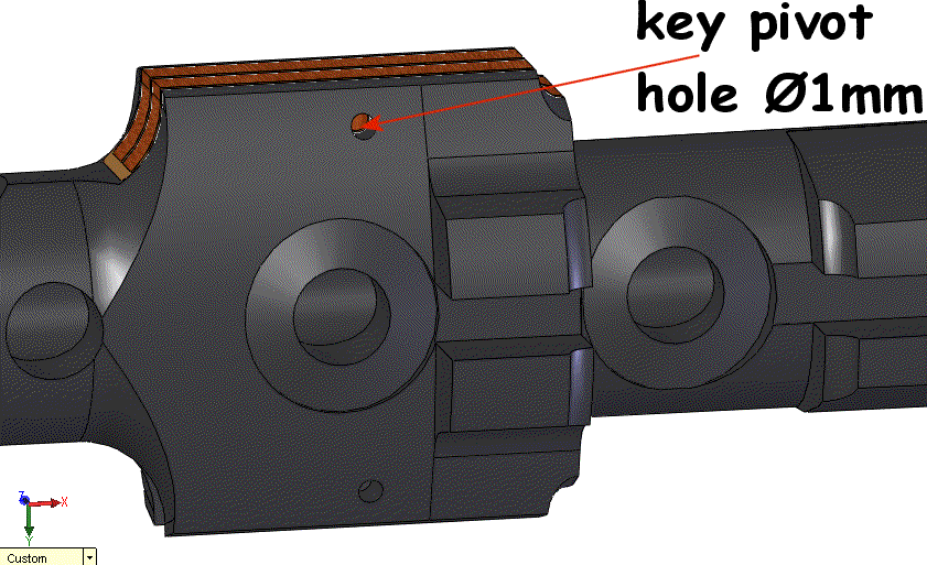 The drilled blank is mounted between centres and turned to a diameter of 19mm (3/4"). It will save time later if you take care to get as good a finish as possible. Mark the ring positions on the blank from the drawings taking care to identify clearly those areas to be turned away.