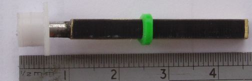 As part of the experimentation I used one of the first good G reeds to explore the effect of drone length on the pitch. Because all the drone parts of the Schoolpipes are interchangable this was easy, if a little time consuming, to do. The results were interesting. I was able to achieve the same pitch with a number of different lengths which seems to indicate that the large diameter part of the bore that results from the tenon of the sliding part is having a significant effect on the pitch.