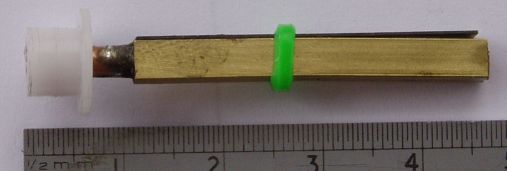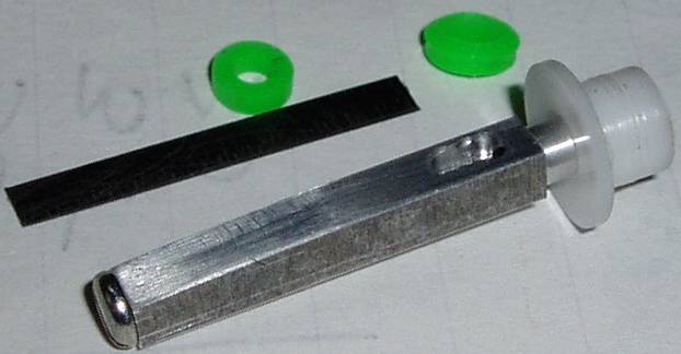 In the picture above are a number of the designs I tried. The ones made from square section brass tube were very successful. The opening was milled and the end of the tube blanked off with a square of balsa held in with super glue. The top hat bush was glued on and the gap between the round and the square filled with the glue. I tried a number of different ways to hold the tongue to the body and probably the best from a production point of view was a narrow (1/4") strip of sticky tape. I used a tape made by Scotch called "magic tape" that is used for mending torn drawings etc. and has a much better and more permanent glue than Sellotape. I also found that a small O ring was a good bridle and easy to move about.