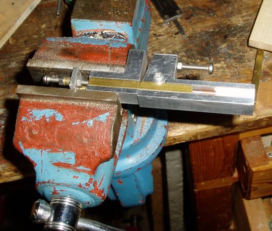 Cutting the carbon fibre strips for the tongues | Measuring the actual gap at the tip of the reed | Adjusting the bend to give the required gap | Reed bending jig |