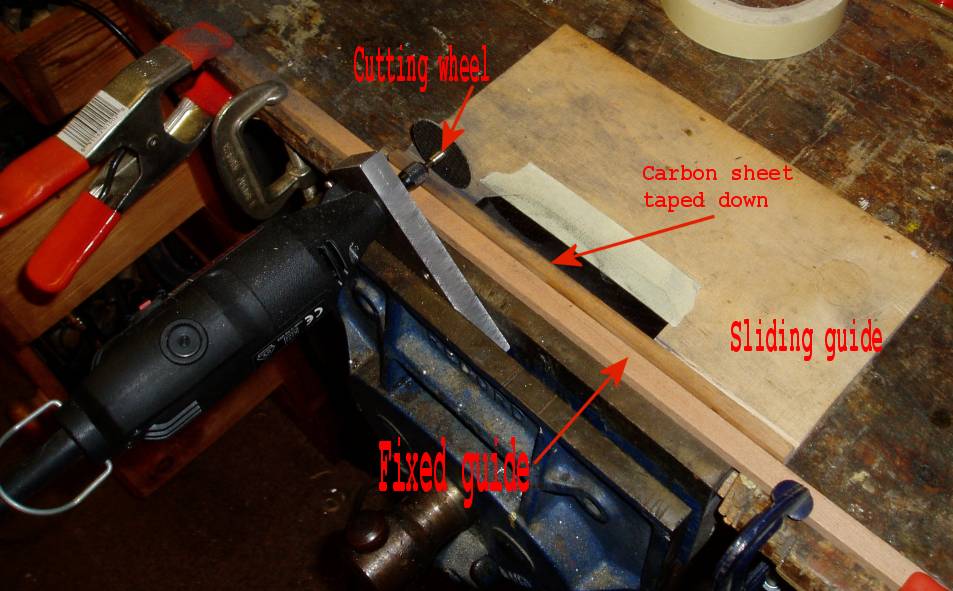 I had the option of two thicknesses of Russian unidirectional carbon fibre cloth: 0.08 mm and 0.12 mm thick. I was lucky that I have a friend who uses this stuff for model aeroplane making so I was able to try some offcuts to see if we were in the ballpark. Only one of the layups worked sufficiently well for me to think that it was possible to use. This was a layup using 3 layers of the 0.12mm cloth having the top and bottom layers running across the tongue and the middle layer running along the tongue. I then persuaded my friend to do me a 4" square sheet of this layup and a similar sheet using the 0.08mm cloth.