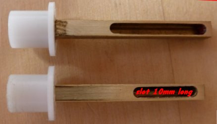 One of the things that I tested was the length of the slot needed in the reed body. I made a number of reed bodies with different length slots and found that a short slot had no impact on the tone or volume and seemed to make the setting up of the reed easier possibly as there is less chance for the tongue to leak around the sides.